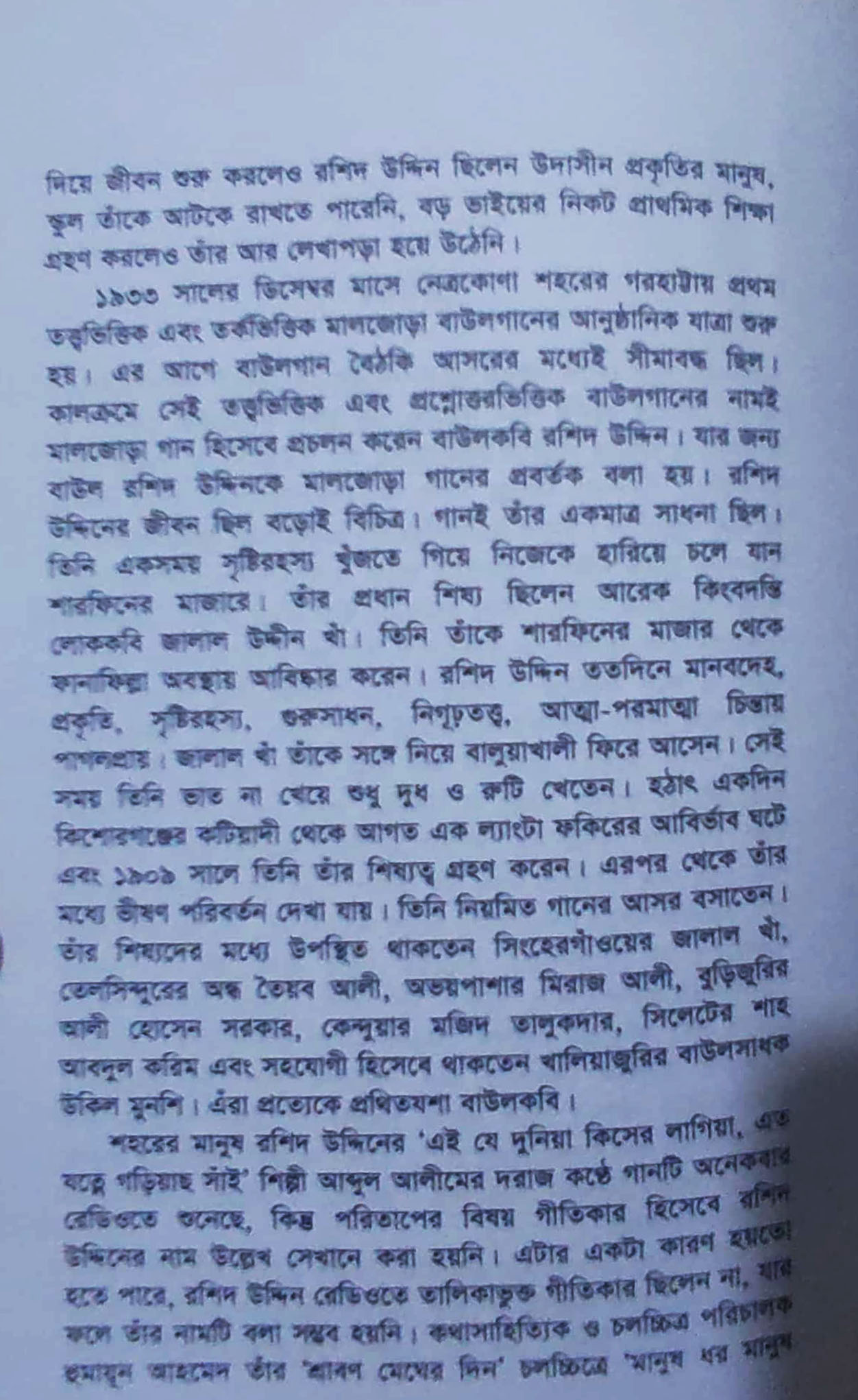 ভাটিবাংলার লোকগানের এক উজ্জ্বল নক্ষত্র ছিলেন বাউলকবি রশিদ উদ্দিন। নেত্রকোণা শহরের উপকণ্ঠে বাহিরচাপড়া গ্রামে জন্মগ্রহণ করেন বাউলকবি রশিদ উদ্দিন। বড় ভাই এন্ট্রান্স পাস করে কেরানির চাকরি দিয়ে জীবন শুরু করলেও রশিদ উদ্দিন ছিলেন উদাসীন প্রকৃতির মানুষ, স্কুল তাঁকে আটকে রাখতে পারেনি, বড় ভাইয়ের নিকট প্রাথমিক শিক্ষা গ্রহণ করলেও তাঁর আর লেখাপড়া হয়ে উঠেনি।