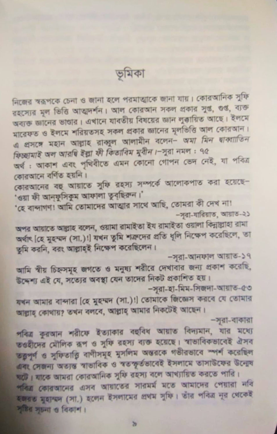 কোরআনের বহু আয়াতে সুফি রহস্য সম্পর্কে আলোকপাত করা হয়েছে- *ওয়া ফী আনফুসিকুম আফালা তুছিরুন।'