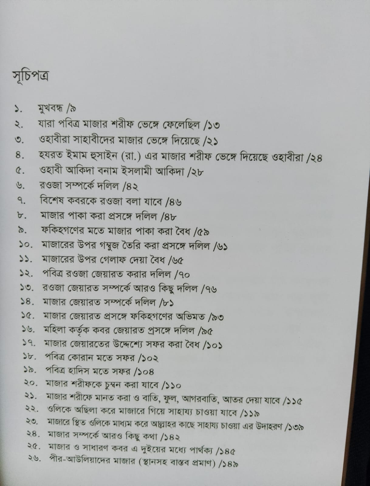 কিছু মানুষ আছেন, যারা পূর্ব থেকেই ওলি-আউলিয়াদের মাজার মানতে রাজি নন, এ বিষয় নিয়েই এই বইতে আলোচনা করা হবে।দলিলের আলোকে, সাহাবীগণ এবং ফকিহগণের দৃষ্টিতে মাজারের পক্ষে শুধু সত্য কথাগুলো উপস্থাপন করা হবে মাত্র। কিন্তু কারও বিরুদ্ধে ইচ্ছাকৃতভাবে অথবা কোন বৈপরীত্যভাব নিয়ে বিদ্বেষপূর্ণ কোন কথা আমার এ বইতে লেখা হবে না। আমার পূর্বের লেখা বইগুলোতেও কোন ব্যক্তিকে ছোট করার উদ্দেশ্যে কোন কথা লেখা হয়নি।