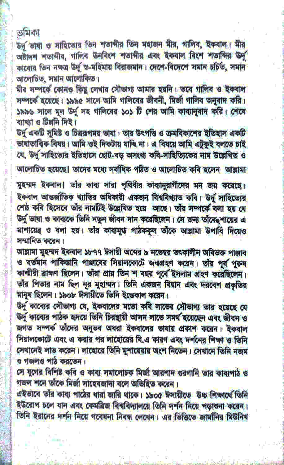 উর্দু একটি সুমিষ্ট ও চিত্ররূপময় ভাষা। তার উৎপত্তি ও ক্রমবিকাশের ইতিহাস একটি ভাষাতাত্ত্বিক বিষয়। আমি ওই দিকটায় যাচ্ছি না। এ বিষয়ে আমি এটুকুই বলতে চাই যে, উর্দু সাহিত্যের ইতিহাসে ছোট-বড় অসংখ্য কবি-সাহিত্যিকের নাম উল্লেখিত ও